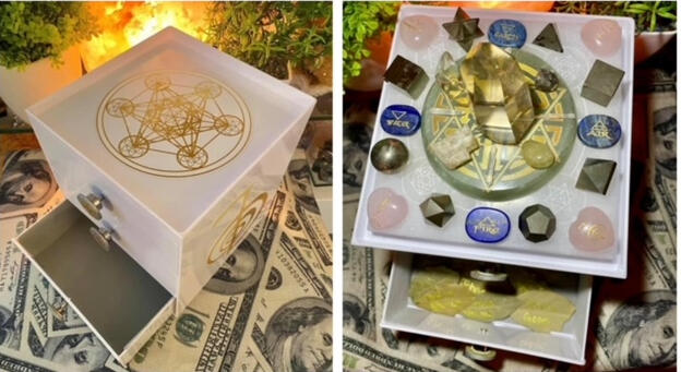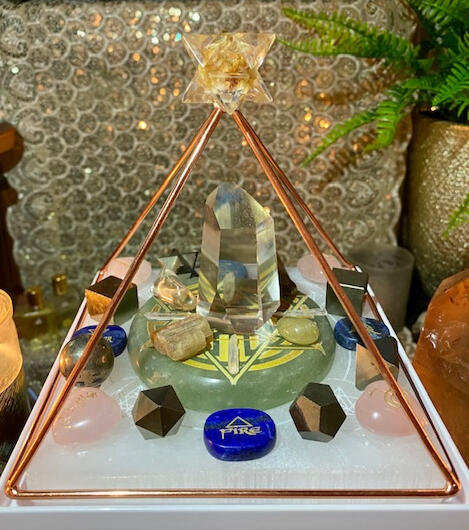 Using my skills as a Certified Crystal Healer, Reiki Master, Sound Healer, Aromatherapist, Color Therapist, and the energy of Archangel Metatron, I design and create powerful crystal grids and sacred altar space to raise vibrational frequencies as well as balance and align your Chakras. Each month's grid and altar is curated to correspond with the Chakra of the Month, and I then place your name and personal intention in the magical custom-designed...